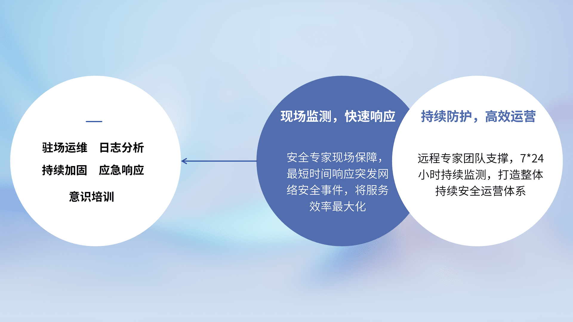 7X24小时持续监测安全事件,保持安全策略有效性,降低资产脆弱性风险,,,,精准拦截黑客攻击,,,,减少被黑客利用的机会,,,,第一时间遏制,,降低损失。。